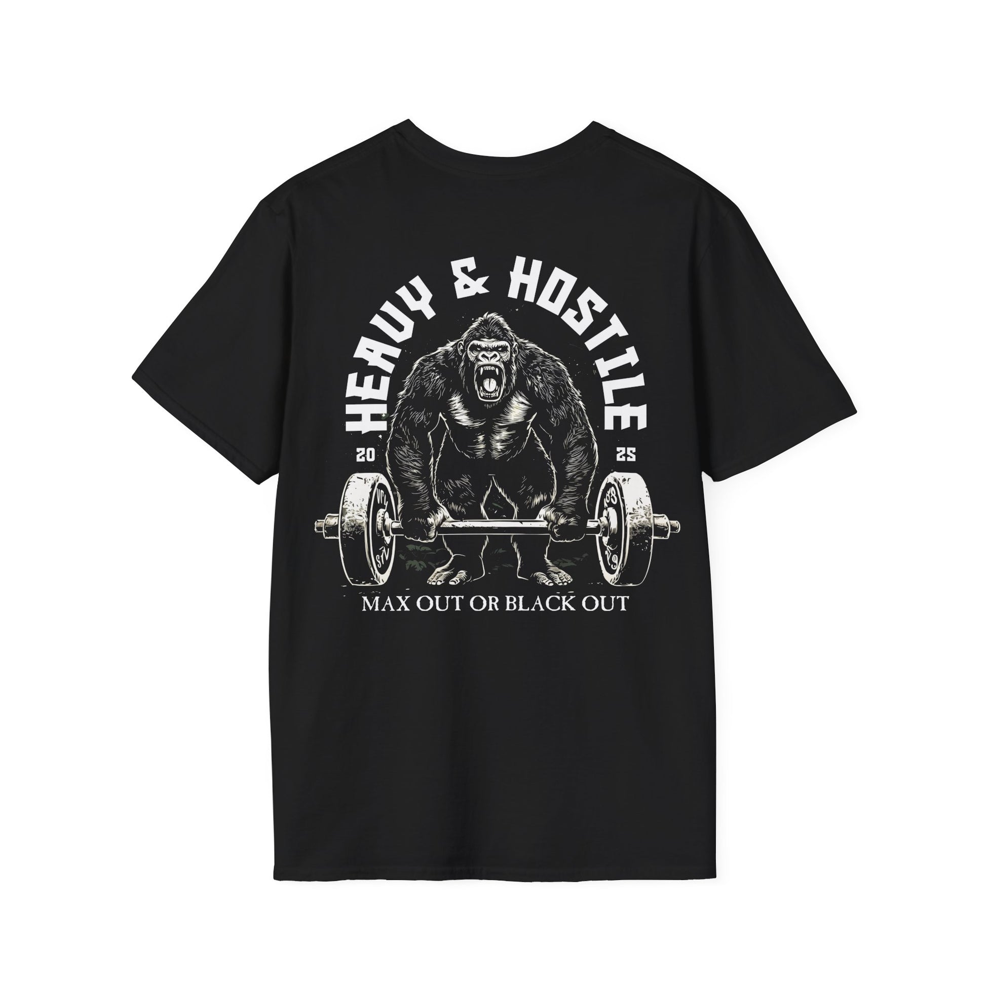 Well, I do hope this shirt helps me pull 495 cold. But most likely the scenario, because I'm 54 is doing warm up sets for over a half hour then rip 495. I hope. Heavy & Hostile should get you yoked for your training sessions! Because you're not training to look good with your shirt off. You're training to be a protector of the ones you love.