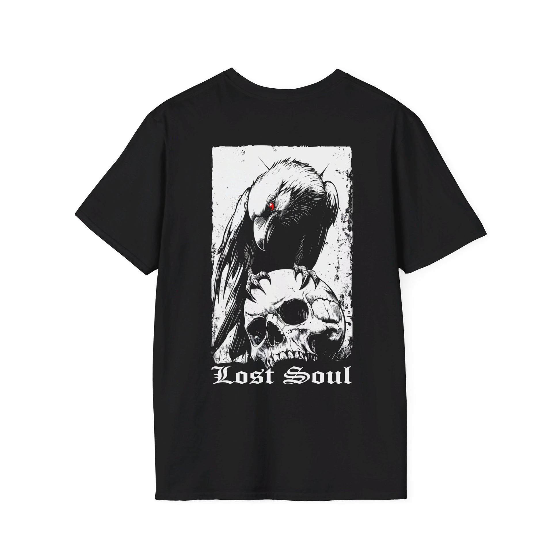 Embrace the mysterious with our "Lost Soul" t-shirt. This haunting design features a raven perched atop a skull, symbolizing the enigmatic journey of a wandering spirit. The striking imagery, combined with the thought-provoking caption, creates a powerful statement piece. Ideal for those who resonate with the darker side of life, this shirt is perfect for making a bold, unforgettable impression.