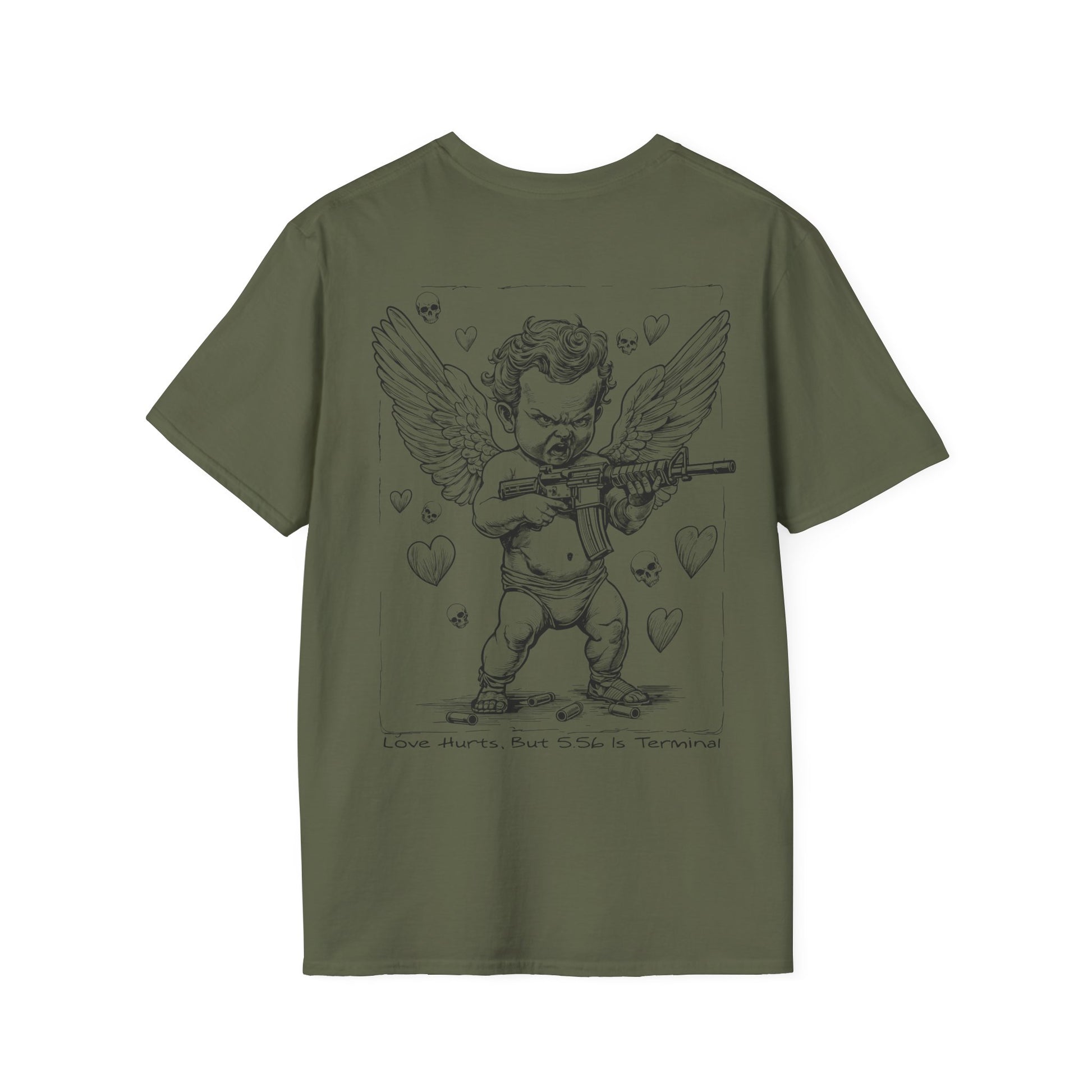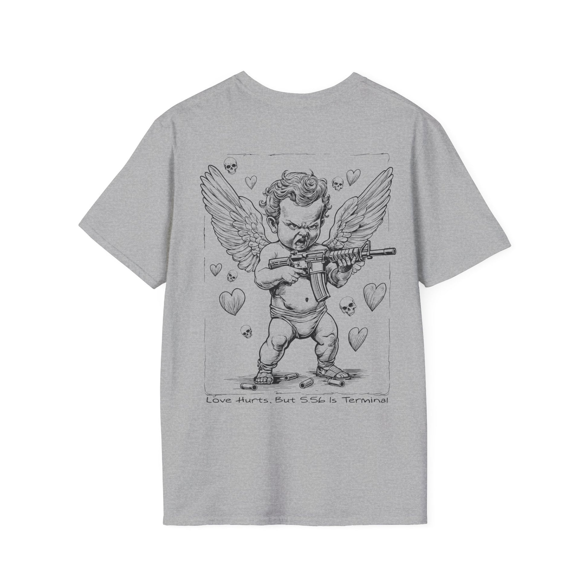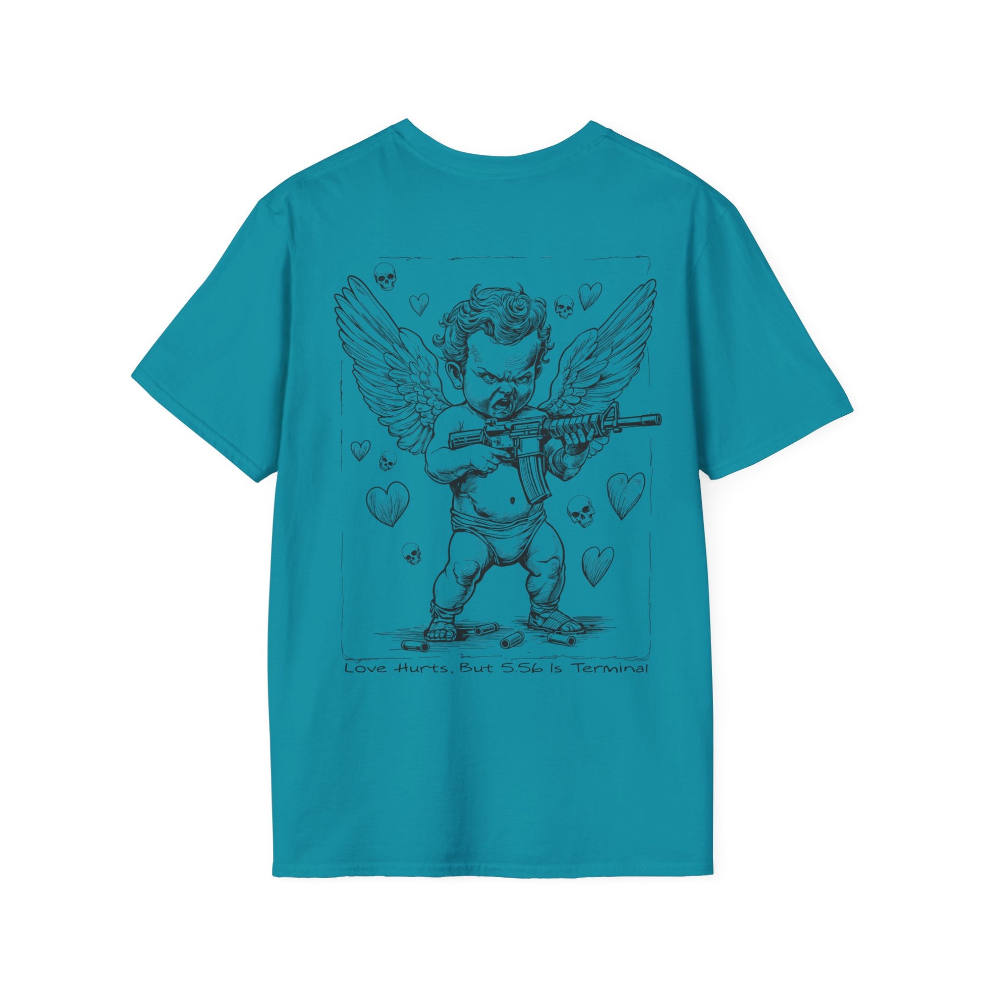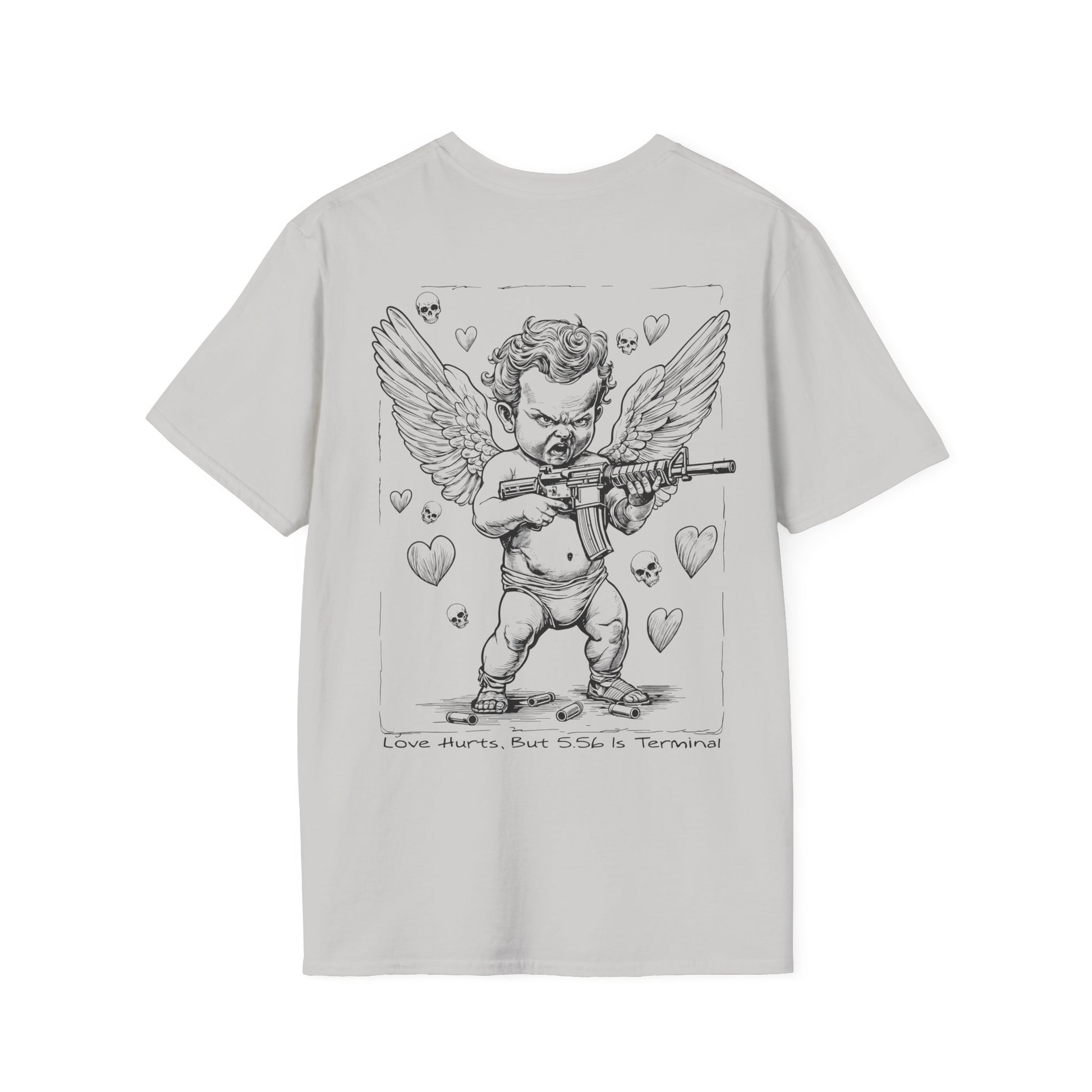 Love Hurts, But 5.56 Is Lethal – They say love is a battlefield, but let’s be real—Cupid’s upgraded his arsenal. This ain't your grandma’s Valentine’s tee; this is for those who know heartbreak stings, but not as much as high velocity. Featuring a pissed-off cherub packing an AR and zero patience, this design is perfect for anyone who’s survived love, war, or a toxic situationship.