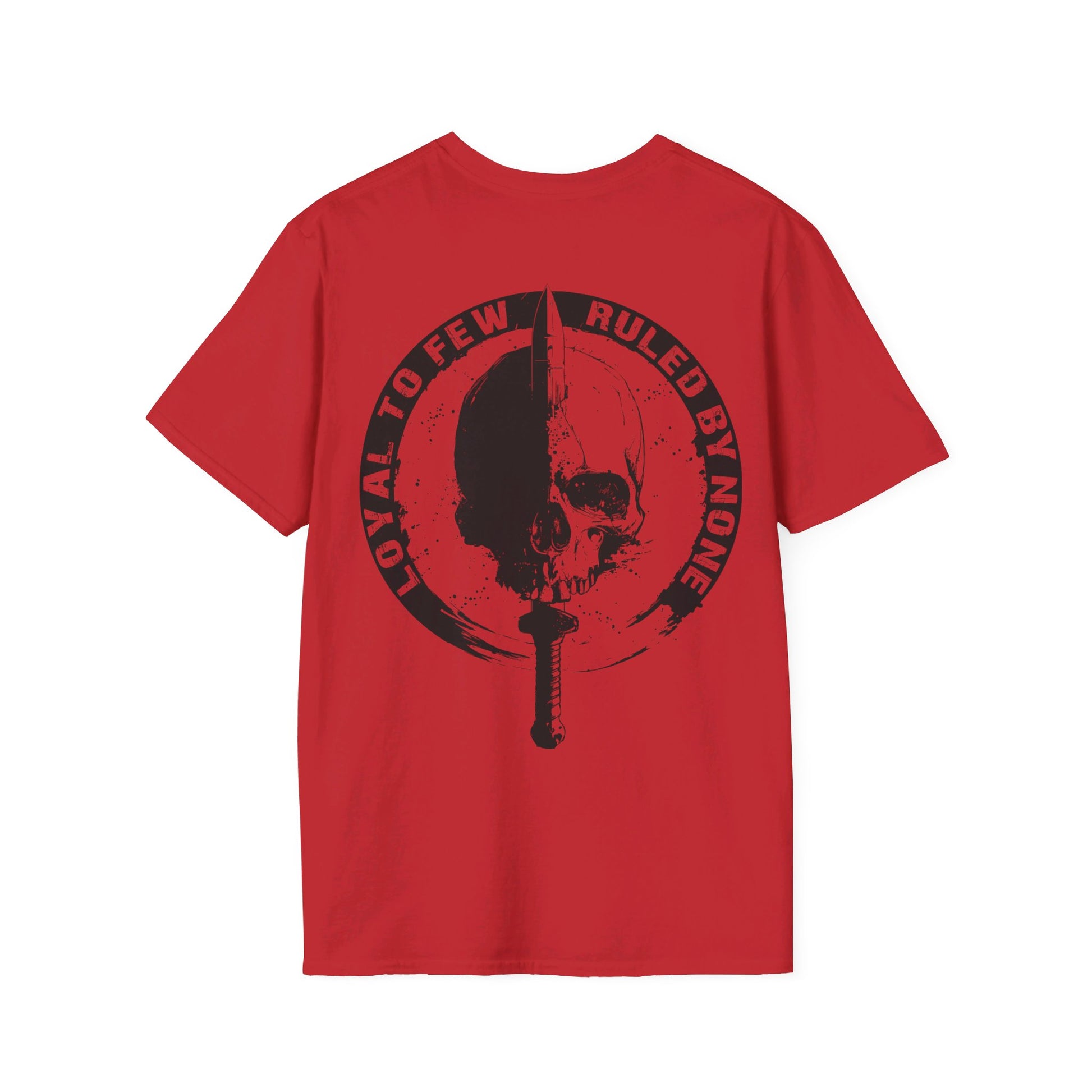 Declare your independence with our "Loyal to Few, Ruled by None" t-shirt. Featuring a bold graphic of a dagger piercing a skull, this design symbolizes unwavering loyalty & a fierce sense of autonomy. This tee is perfect for those who value loyalty to their inner circle & refuse to be controlled. Wear it proudly & showcase your unbreakable spirit.