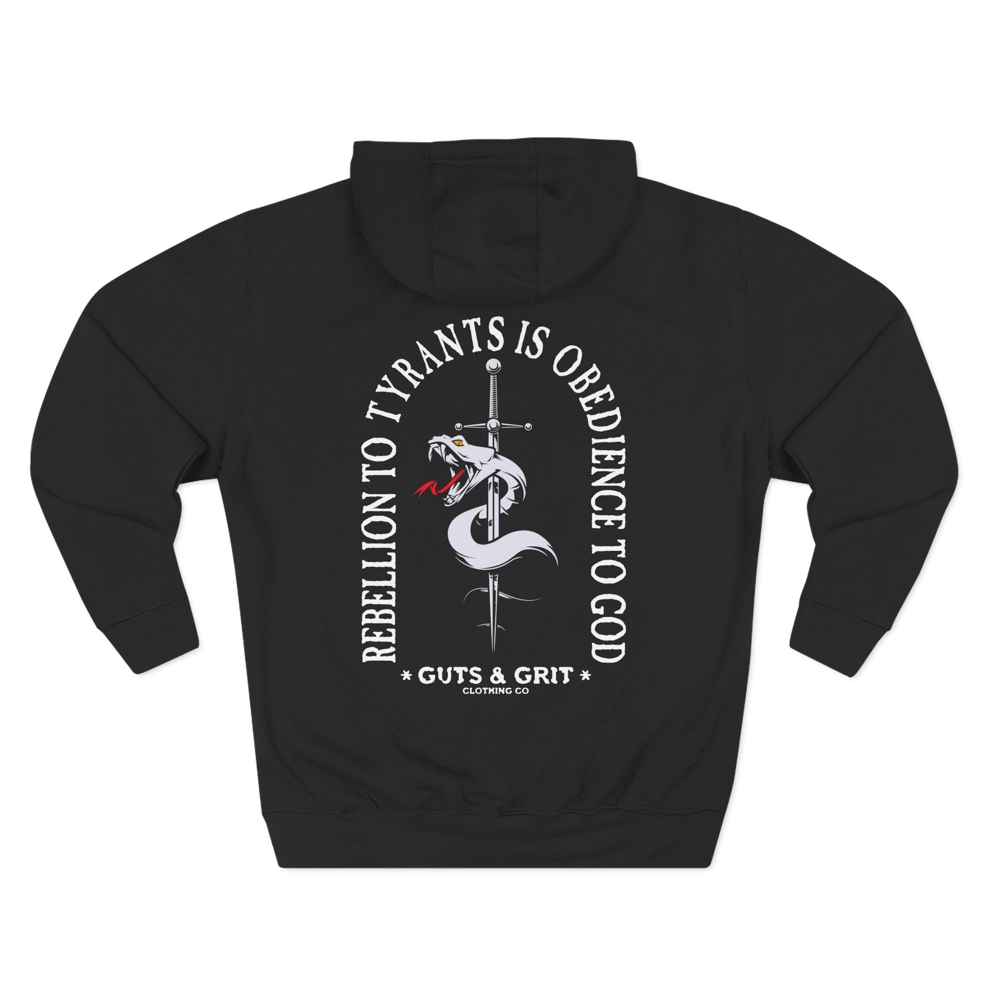 Introducing our "Rebellion to Tyrants is Glory to God" hoodie—a bold fusion of conviction and spirituality. This design captures the essence of courage in the face of oppression, echoing historical sentiments of resistance against tyranny. The profound message serves as a reminder that standing up for justice is not only a human right but a higher calling. With its powerful proclamation and understated design, this tee invites you to embody the spirit of rebellion against injustice with the divine strength of conviction. Elevate your style with a pullover that not only speaks volumes but also carries a timeless message of moral courage.
